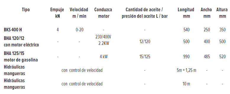 El accionamiento hidráulico de la BKS 400 se puede realizar a través de una fuente de alimentación independiente o por otro aparato.