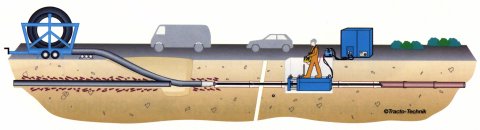 Con esto se ahorra tiempo y se pueden hacer fácilmente sustituciones de más de 200 m diarios. Las curvas pequeñas en la tubería vieja se pueden superar, debido a la articulación del enganche de las barras QuickLock.