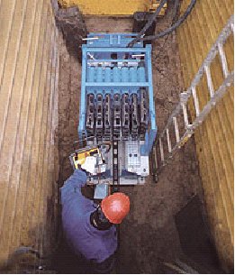 El Berstlining estático se inicia desde una cala de entrada (o arqueta) desde la cual se introducen las barras por la tubería vieja hasta la cala de salida (o arqueta).